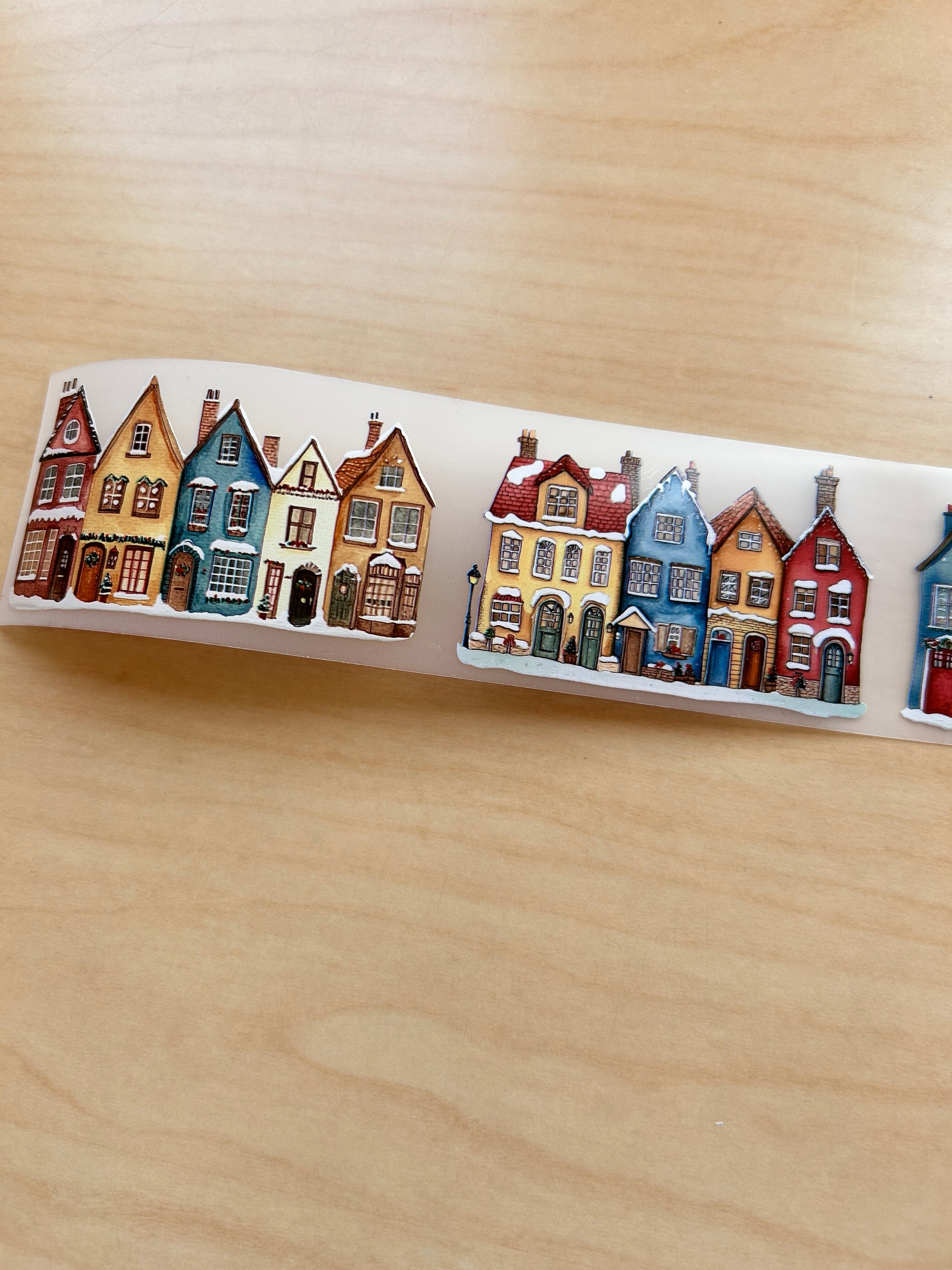 雪の積もった屋根と道が冬らしくかわいいテープです。