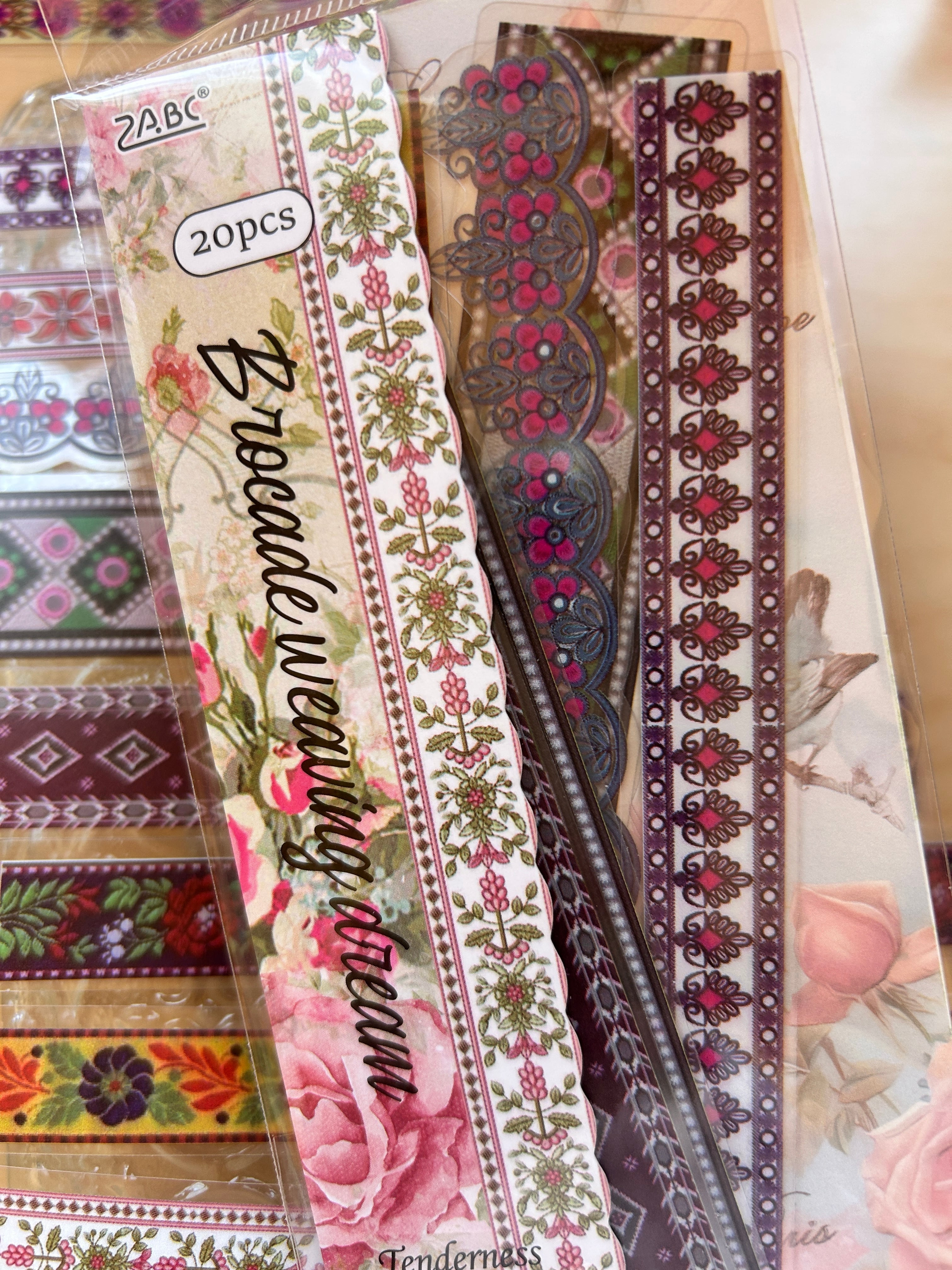 エスニックテイストなフラワー柄が美しい細長いフレークシールです。