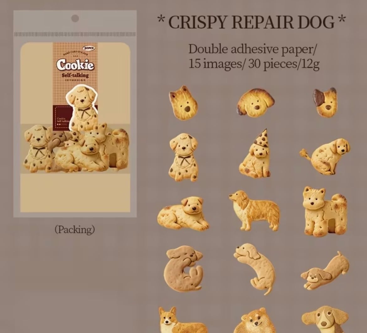 かわいいワンちゃんがクッキーになったフレークシールです。